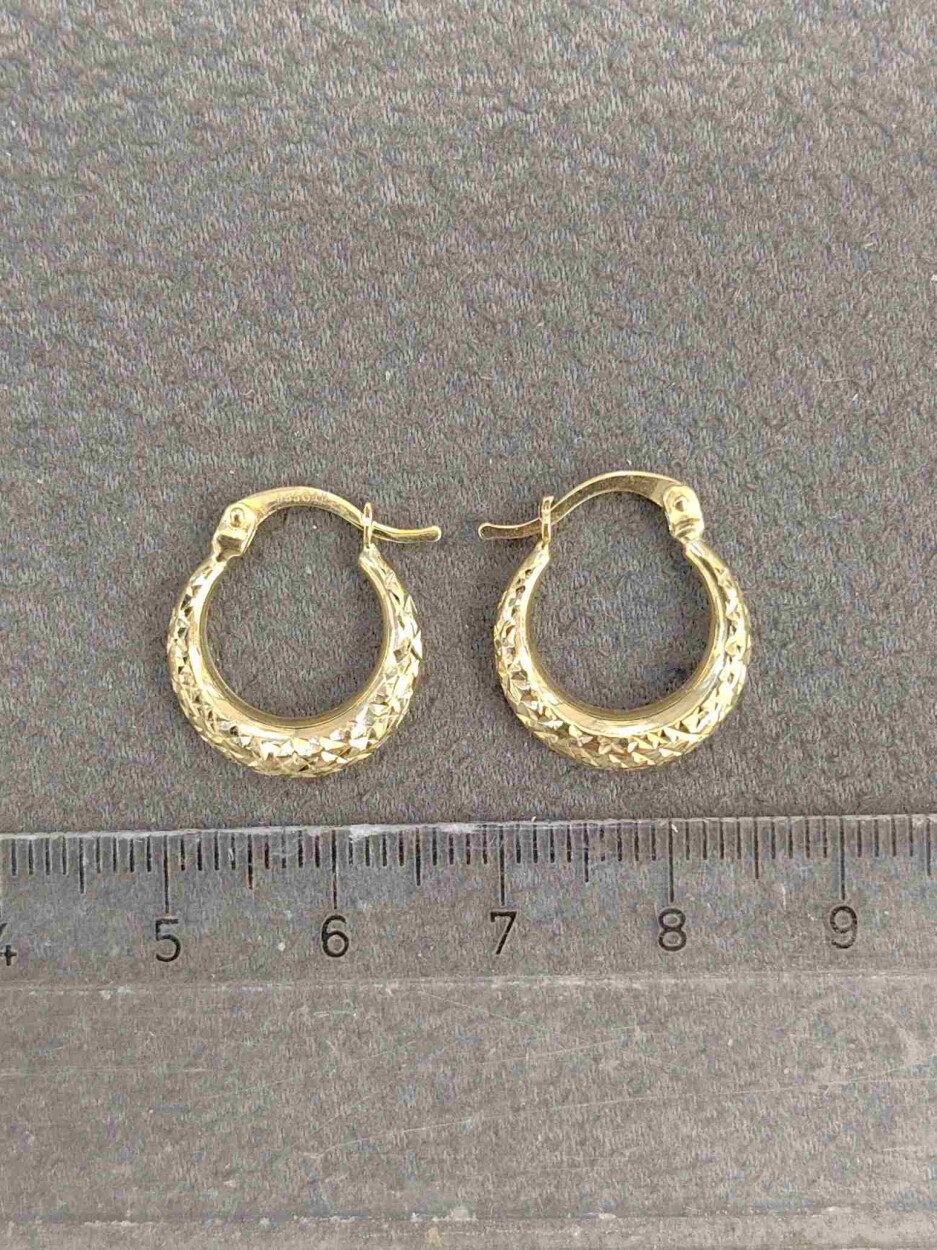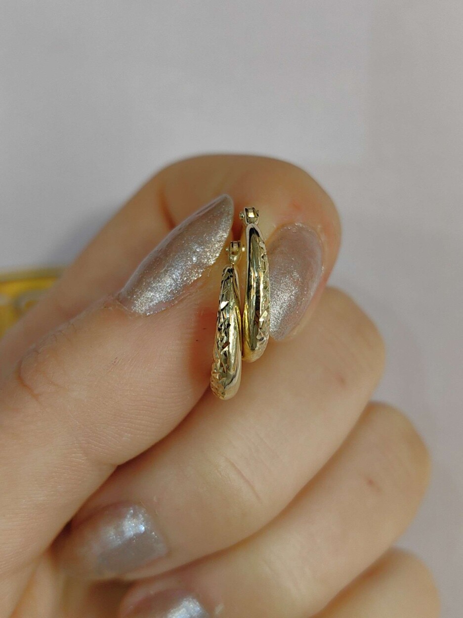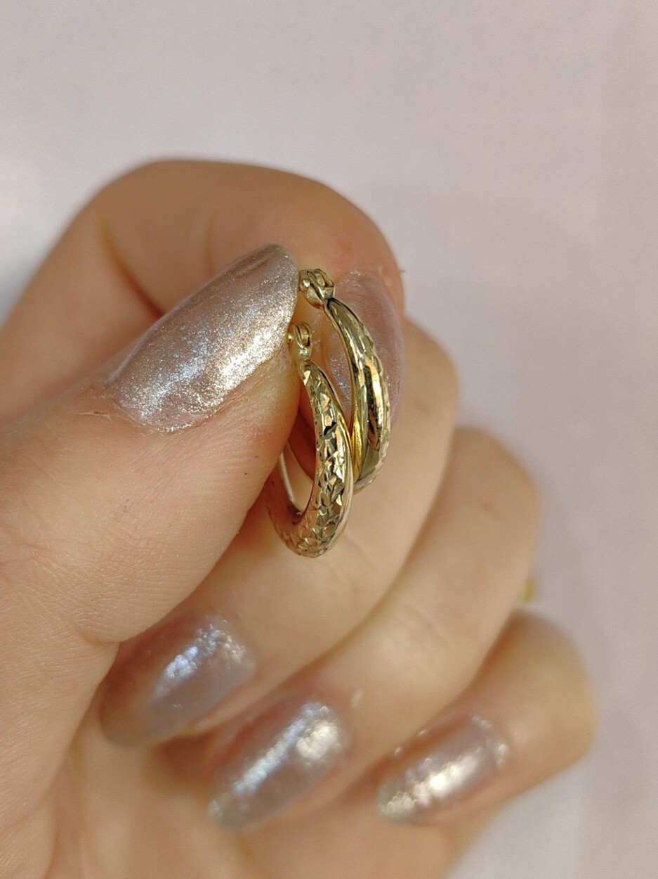 14 Ayar Desenli Halka Altın Küpe, 1.19 gram ağırlığıyla zarif ve hafif bir kullanım sunar. Desenli tasarımı, altının ışıltısını yansıtarak şık ve modern bir görünüm elde etmenizi sağlar. Türkiye'de üretilen bu özel aksesuar, günlük kullanım için ideal olduğu gibi düğün, nişan, söz ve davet gibi özel anlarınıza da mükemmel uyum sağlar. Hem şıklığınızı hem de zarafetinizi yansıtan bu küpe, her ortamda göz alıcı bir seçimdir.