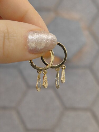 2,43 gramlık ağırlığıyla günlük kullanımda zarif bir hafiflik sunarken, kalemli işçiliğin verdiği parlaklık her ortamda fark edilir olmanızı sağlar. Sallantılı formuyla hareketi yakalayan bu tasarım, altın sarısının sıcaklığını kalp figürleriyle birleştirerek, her bakışta duyguları harekete geçirir.