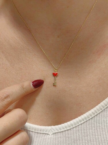 Aşk ve şans dolu bu zarif mineli kalp anahtar model altın kolyeyi hemen koleksiyonunuza ekleyin ve stilinize anlam katın!
