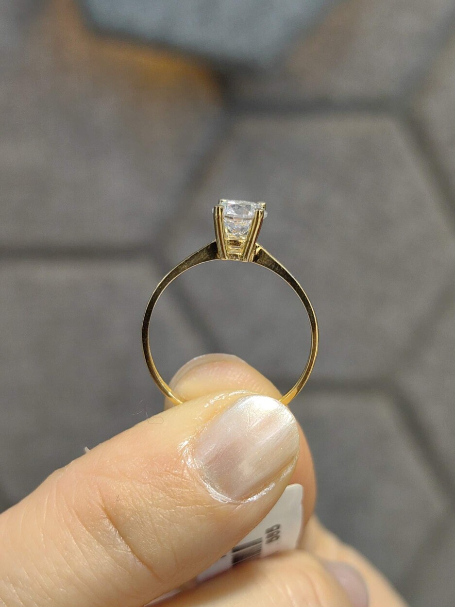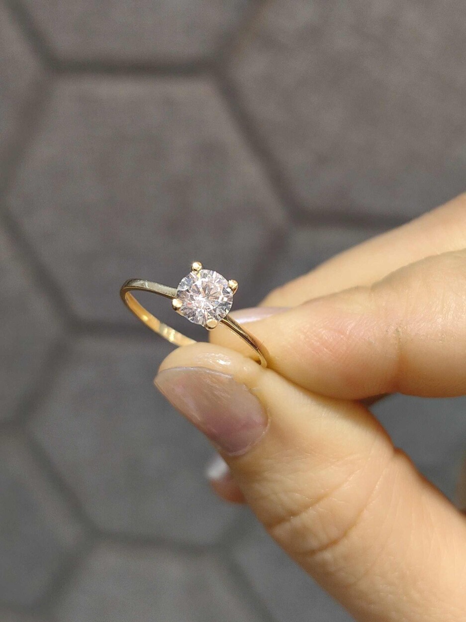 14 Ayar Sarı Altın Özel Tasarım Tektaş Yüzük (YZ001851), sade ama etkileyici bir zarafeti yansıtır. 585 milyem saflığındaki altın, 1.11 gram ağırlığında ve standart ölçüleriyle her parmağa rahatça uyum sağlar.