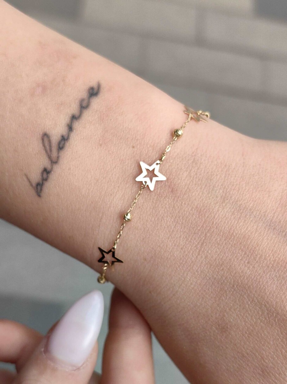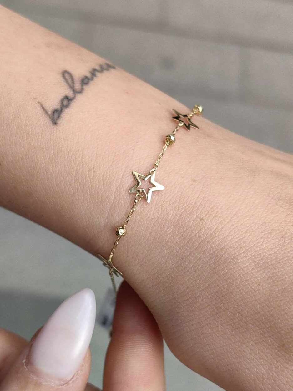 Dorika toplu tasarımı ve yıldız detayları, bilekliğe zarif bir dokunuş ekler ve modern şıklığı ön plana çıkarır. Hafif yapısı sayesinde günlük kullanımda rahatlık sağlar, ancak özel anlarda da stilinizi tamamlar. Kendinizi şımartmak ya da sevdiklerinize anlamlı bir hediye sunmak için mükemmel bir seçim olan bu bileklik, zarafetiyle her anınıza değer katar.