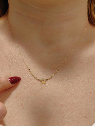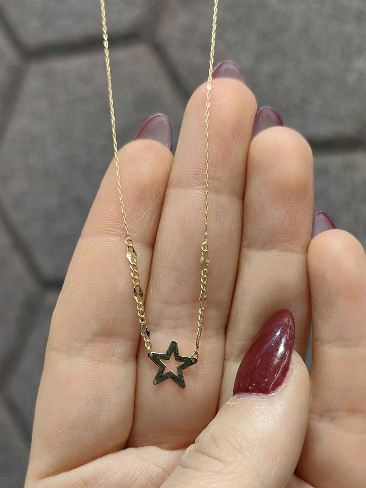 Işıltısı geceyi aydınlatacak gibi… 14 ayar 585 milyem altınla işlenmiş bu yıldız figürlü zarif kolye, 0.95 gramlık hafifliğiyle boynunuza zarifçe oturuyor. 45 cm uzunluğunda tasarlanan bu kolye, altının sıcak sarı tonlarıyla her anınıza ışıltı katacak. 2025 yılında Türkiye’de özenle üretilen bu takı, yıldız figürleriyle stilinize büyüleyici bir dokunuş ekliyor.