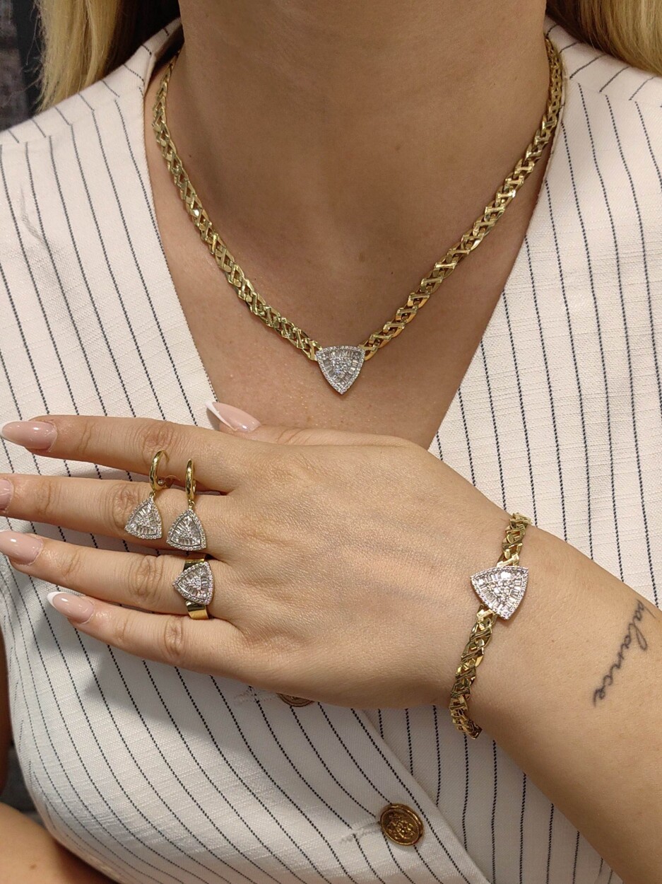 Gelince Haber VerGURMET FİZYON KALEMLİ IŞILTILI CORONET DİZİLİMLİ BAGET VE PRENSES KESİM 14 AYAR TARZ ALTIN SET TAKIMI SET00464-486-485-KNY02473