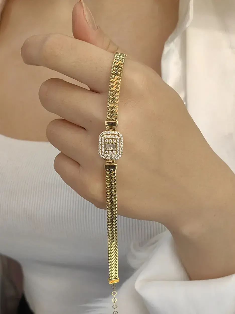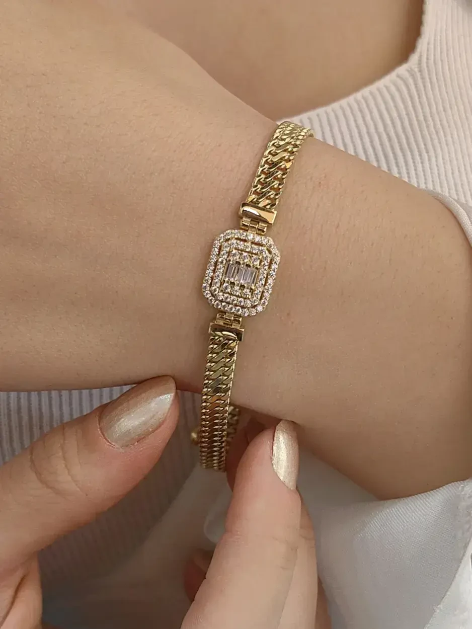 Hem modern hem de klasik tarzlara uyum sağlayan bu bileklik, zarif tasarımı ve dayanıklı yapısıyla uzun yıllar keyifle kullanılabilir. Kendinizi ödüllendirmek veya sevdiklerinize anlamlı bir hediye sunmak için mükemmel bir seçim olan bu bileklik, her anınıza zarafet katacak ve stilinizi tamamlayacaktır.