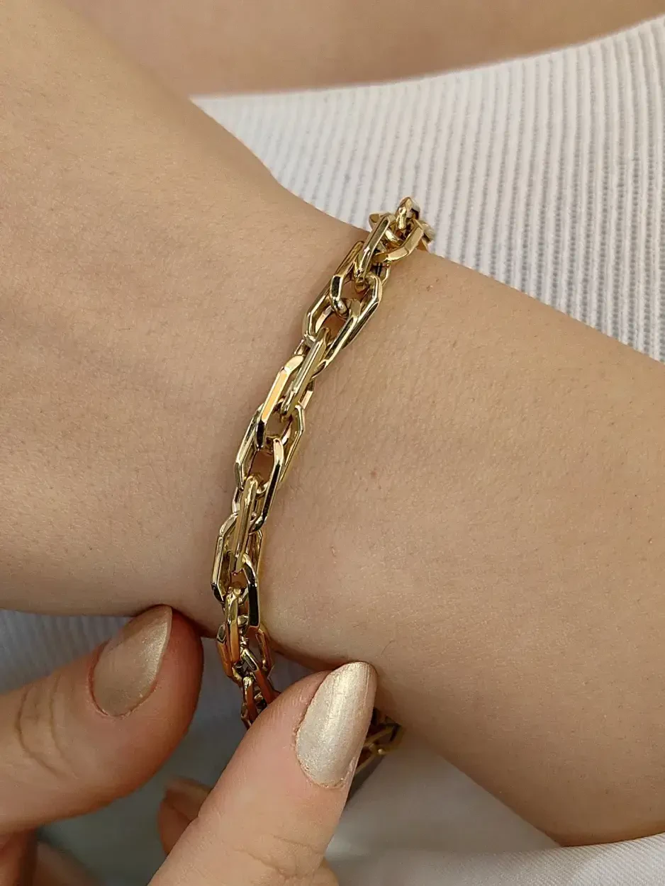 Zarif ve sofistike tasarımı, hem modern hem de klasik tarzlara uyum sağlar. Dayanıklı yapısı sayesinde günlük kullanımda rahatlık sağlar ve özel günlerde de stilinizi tamamlar. Kendinizi ödüllendirmek ya da sevdiklerinize anlamlı bir hediye sunmak için mükemmel bir seçim olan bu bileklik, her anınıza değer katar ve şıklığınızı ön plana çıkarır.